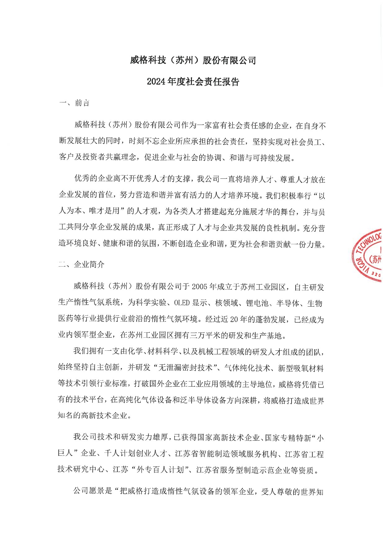 威格科技(苏州)股份有限公司 2024年度社会责任报告